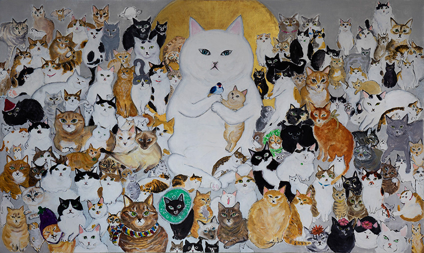 会場でのライブペインティング。実在する猫さんがモデルになっており、現在でも描き足しされ絵が少しずつかわっています。